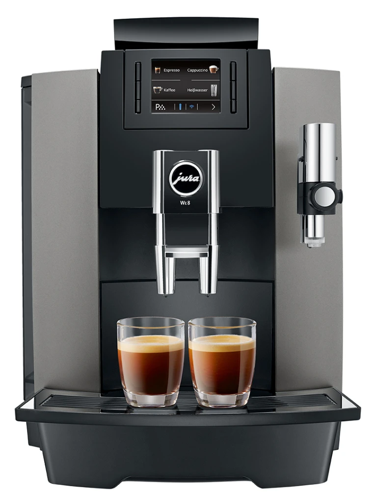 Iedereen die van de fijne dingen in het leven houdt, zal de Jura WE8 waarderen. Met een ruime keuze aan koffie- en theespecialiteiten en een strak, lineair design is de one-touch functie een ideale oplossing voor locaties waar ongeveer 30 koffiespecialiteiten per dag worden geconsumeerd.