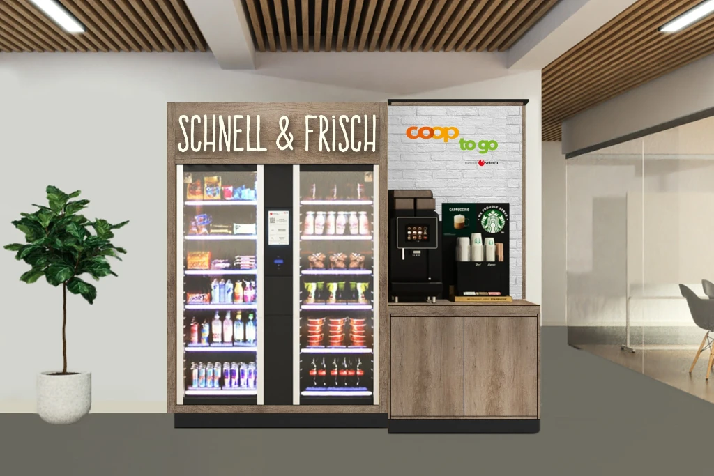 Wäre es nicht schick, wenn Sie frische Lebensmittel, Snacks und Getränke in einer Lösung anbieten könnten? Wenn Sie Ihre Cafeteria oder kleine Kantine durch eine unbediente und kostengünstigere Alternative ersetzen könnten?