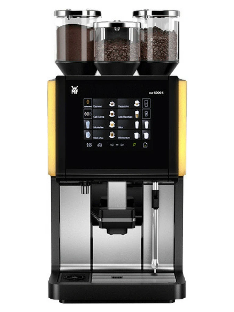 WMF 5000 S+ kombinerer elegant udseende med en brugervenlig grænseflade. Med pålidelige komponenter af høj kvalitet og fremtidssikret digital tilslutning serverer denne kaffemaskine en række tilpassede drikkevarer og er velegnet til ethvert miljø.