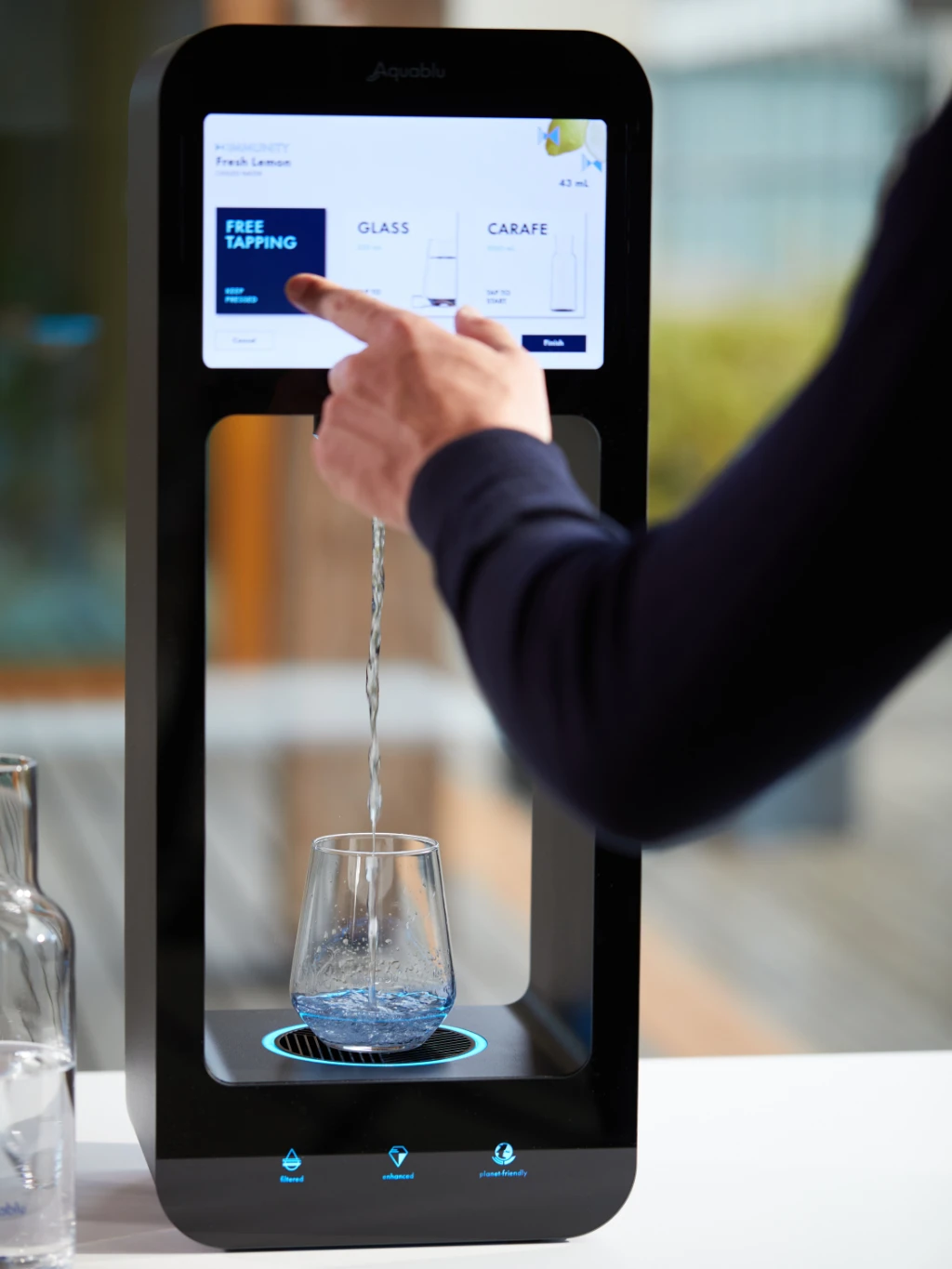Den seneste innovation inden for vand til fremtidens kontor. Aquablu REFILL tilbyder exceptionel vandkvalitet samt et udvalg af tempereret, afkølet, mousserende og aromatiseret vand. Alle drikke er uden sukker og tilsat vitaminer, mineraler og/eller koffein.
