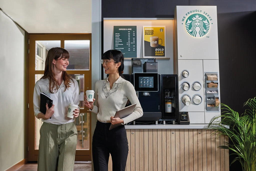 Our We proudly serve Starbucks® program is fully automated, where consumers can select a wide selection of We proudly serve Starbucks® beverages made with quality beans and fresh milk.