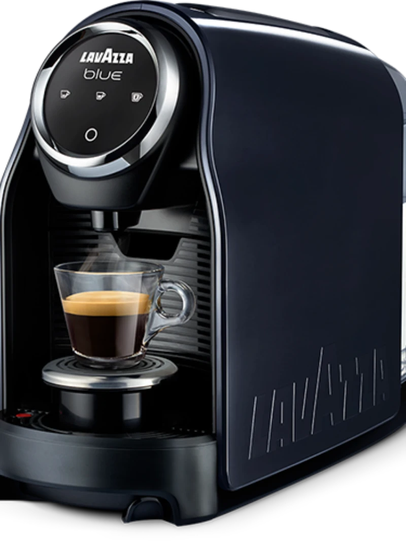 A compact and modern capsule coffee machine designed to deliver authentic Italian coffee using the Lavazza Blue pod system. Perfect for small spaces.
